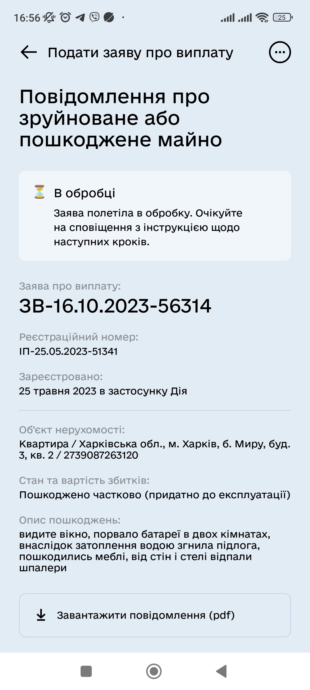 Родина вимушена орендувати житло, адже їх власна квартира потрапила під обстріл 17 липня 2022 р. Було пошкоджено вікна, двері, меблі та комунікації. Тобто квартира - непридатна до життя. Родина подавала документи на єВідновлення, але отримали відмову.
