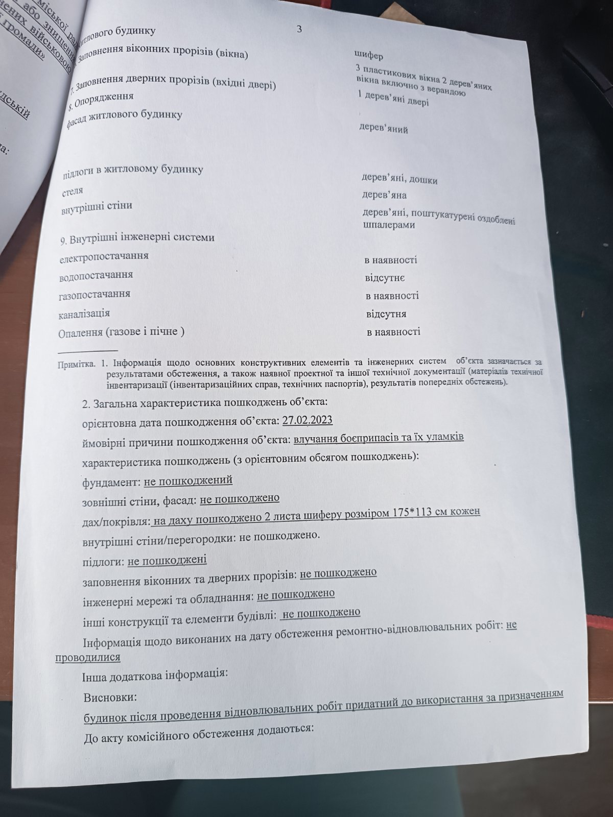 У 2023 році їх будинок постраждав від ворожих обстрілів, було пошкоджено 3 листи шиферу на даху. Родина, а особливо діти, отримали сильний переляк.