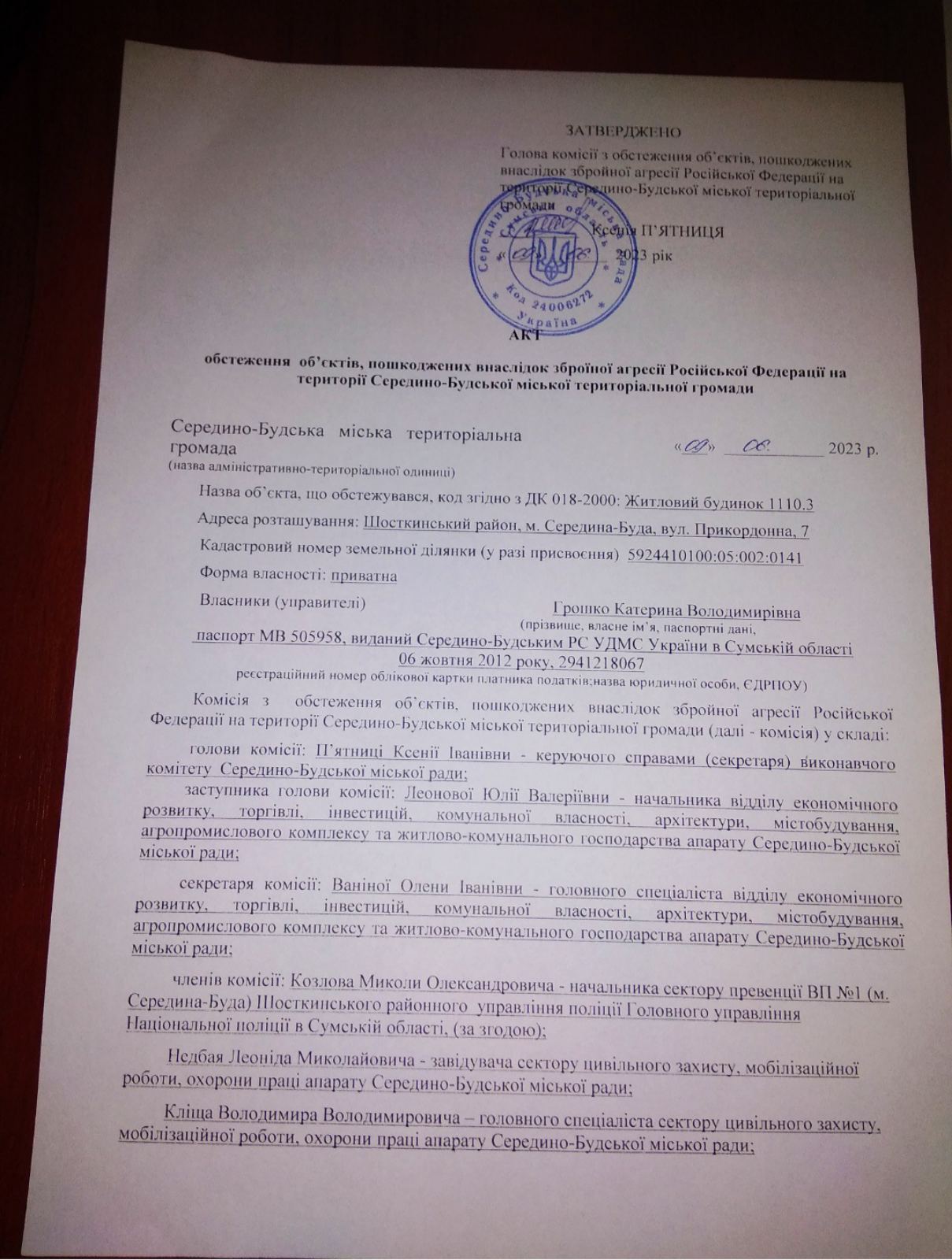 "12 серпня 2023 року, якраз напередодні дня народження доньки відбувся обстріл" - розповідає Катерина. Жінка проживає в місті Середино-Буда, разом з 11 річною донькою. Пані Катерина має інвалідність, тому за станом здоров'я працювати не може.