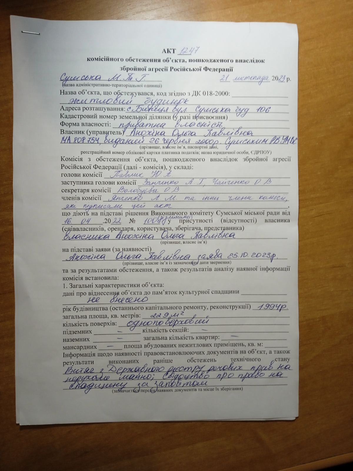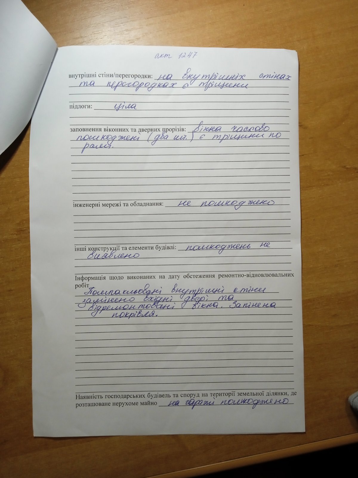 7 березня 2022 року під час ворожих обстрілів у будинку жінки пошкоджено вікна та дах. Від вибухової хвилі потріскало: стіни, підвал, асфальт у дворі. Сім'я була в будинку, на щастя, вони встигли сховатися в підвалі, що врятувало їм життя. Самотужки поміняли кілька вікон, запінили дірки в даху. Пані Ольга звернулася до Благодійного фонду з проханням допомогти відновити будинок.
