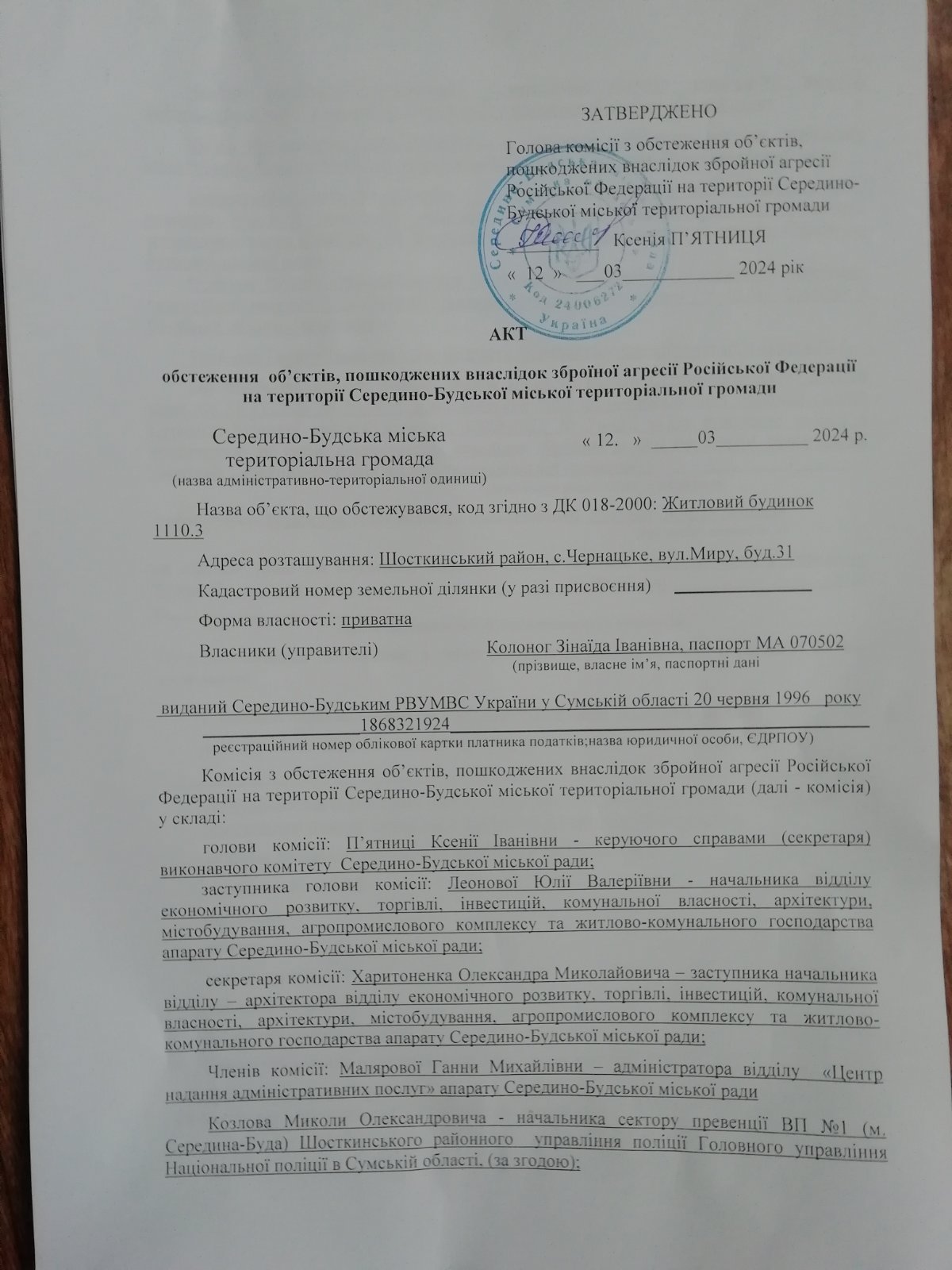 Більше 25 років Руслана Миколаївна проживає в селі Чернацьке Сумської області. Працювала жінка завідуючою клубу, зараз він не працює, бо в нього влучив снаряд, його ліквідували. Наразі пані Руслана перебуває на обліку в центрі зайнятості.