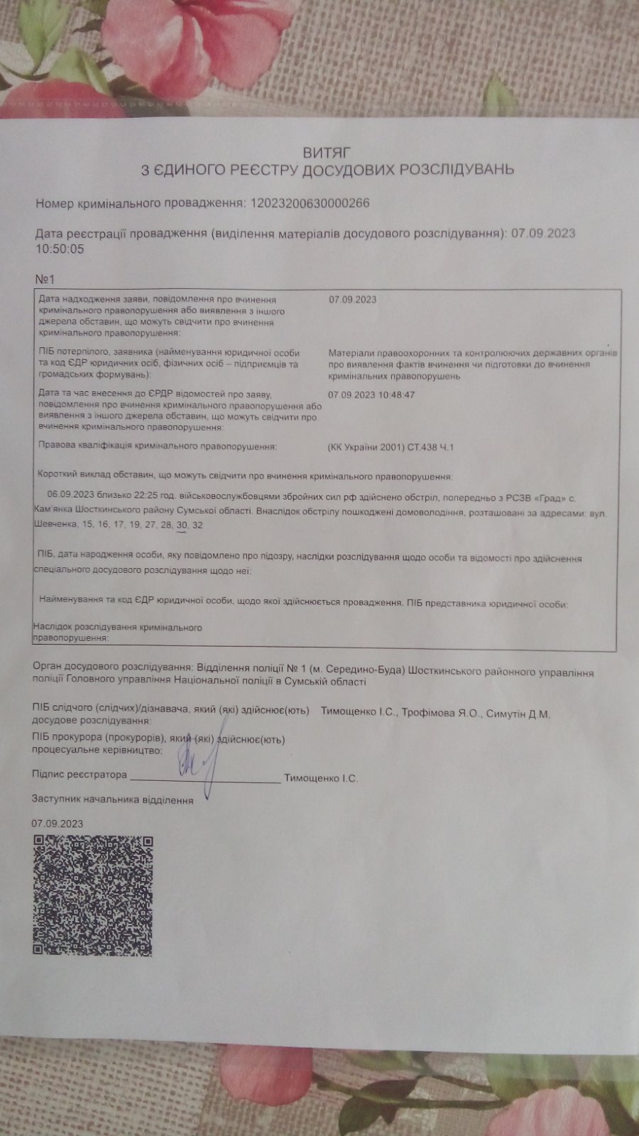 Їх будинок страждав від обстрілів двічі, вперше - у жовтні 2023, вдруге - 6 березня 2024 р. Загалом було пошкоджено: 6 вікон, вхідні двері та 4 листи шиферу на даху. Під час обстрілу родина була вдома, діти дуже сильно злякалися.