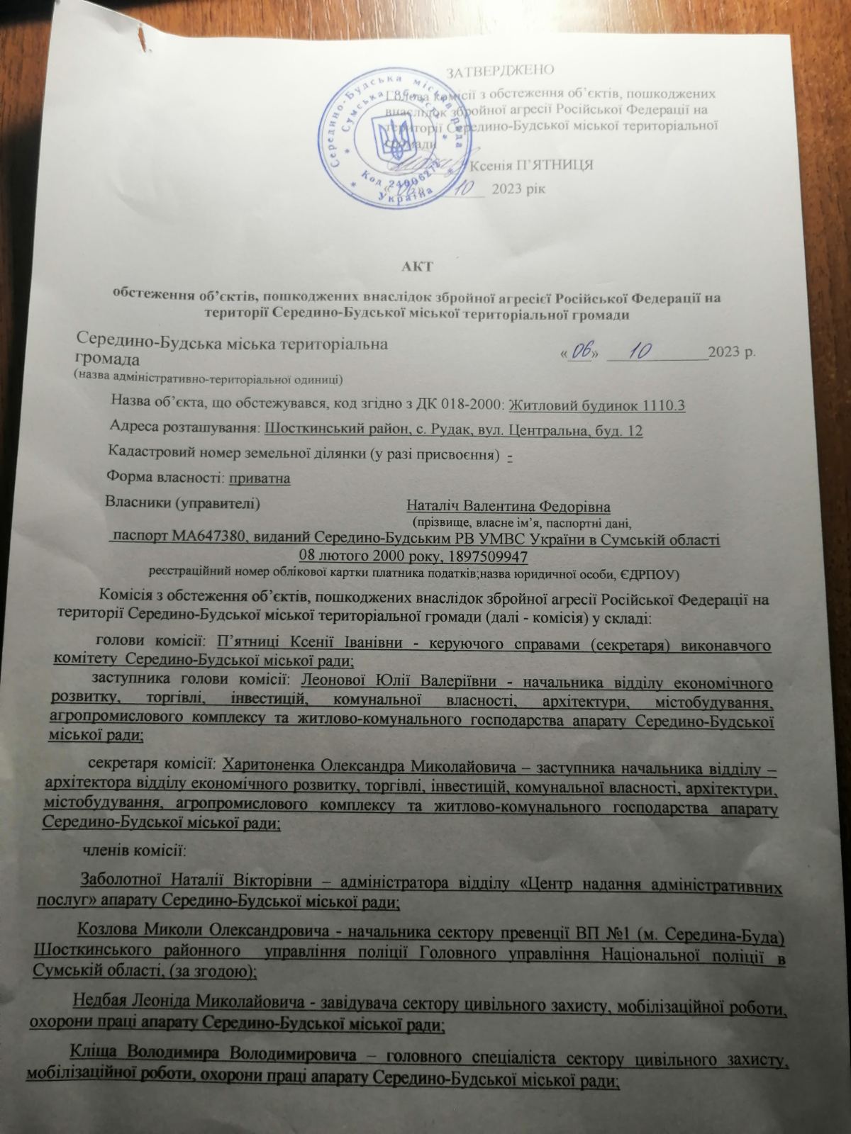 У вересні 2023 року вночі окупанти обстріляли село, внаслідок чого в будинку жінки було пошкоджено чотири вікна та вхідні двері. Самотужки заклеїли вікна плівкою.