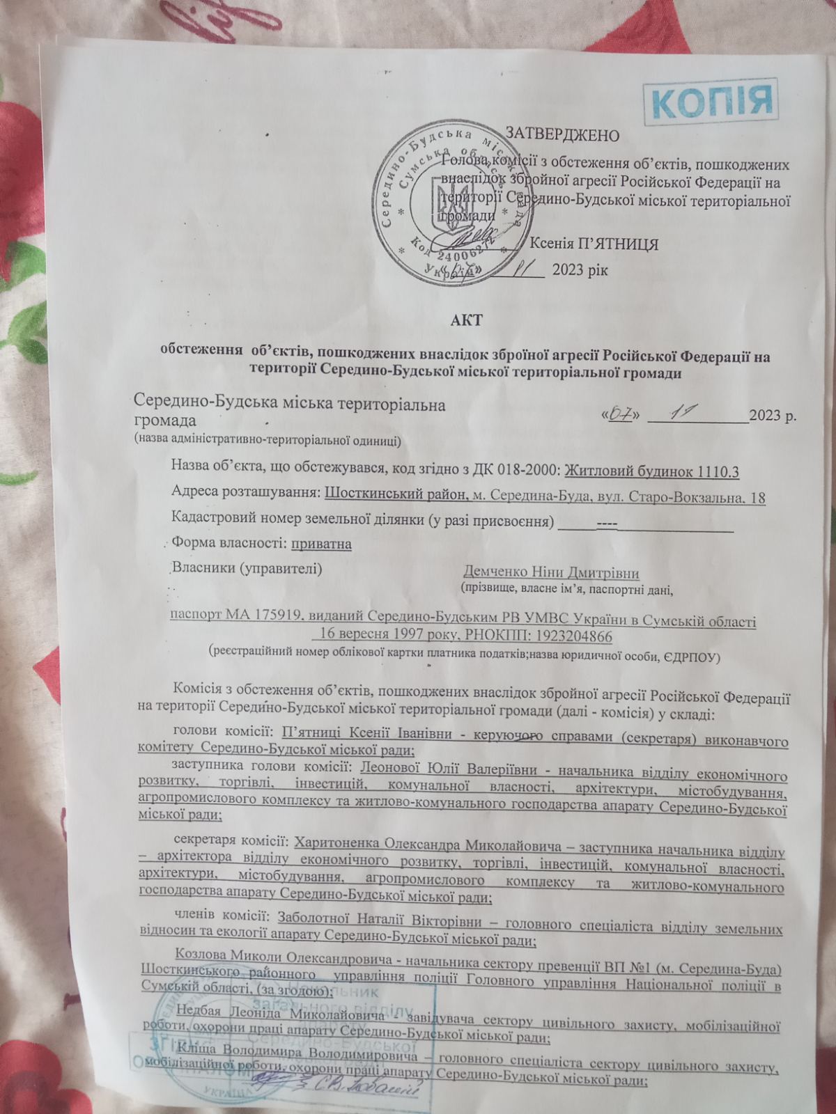23 листопада 2023 р. їх будинок постраждав від обстрілу, було пошкоджено: 4 вікна, фундамент та фронтон. Також пенсіонери отримали сильні психологічні травми, чоловік Ніни після обстрілу лежав у лікарні.