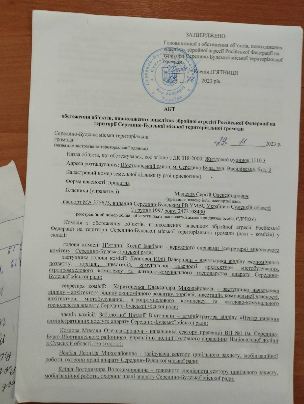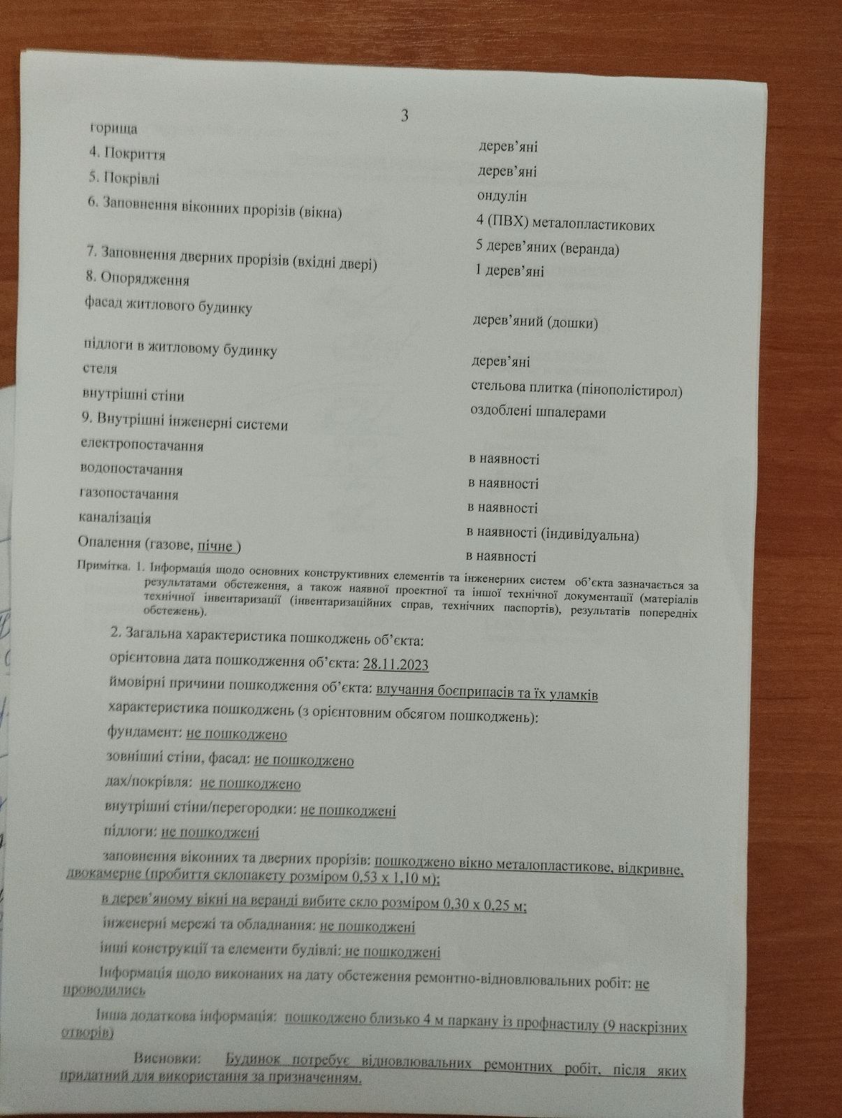 28 листопада 2023 року під час ворожого обстрілу в будинку пошкоджено два вікна та огорожа. Самотужки закрили плівкою. Просять допомоги в заміні двох вікон.