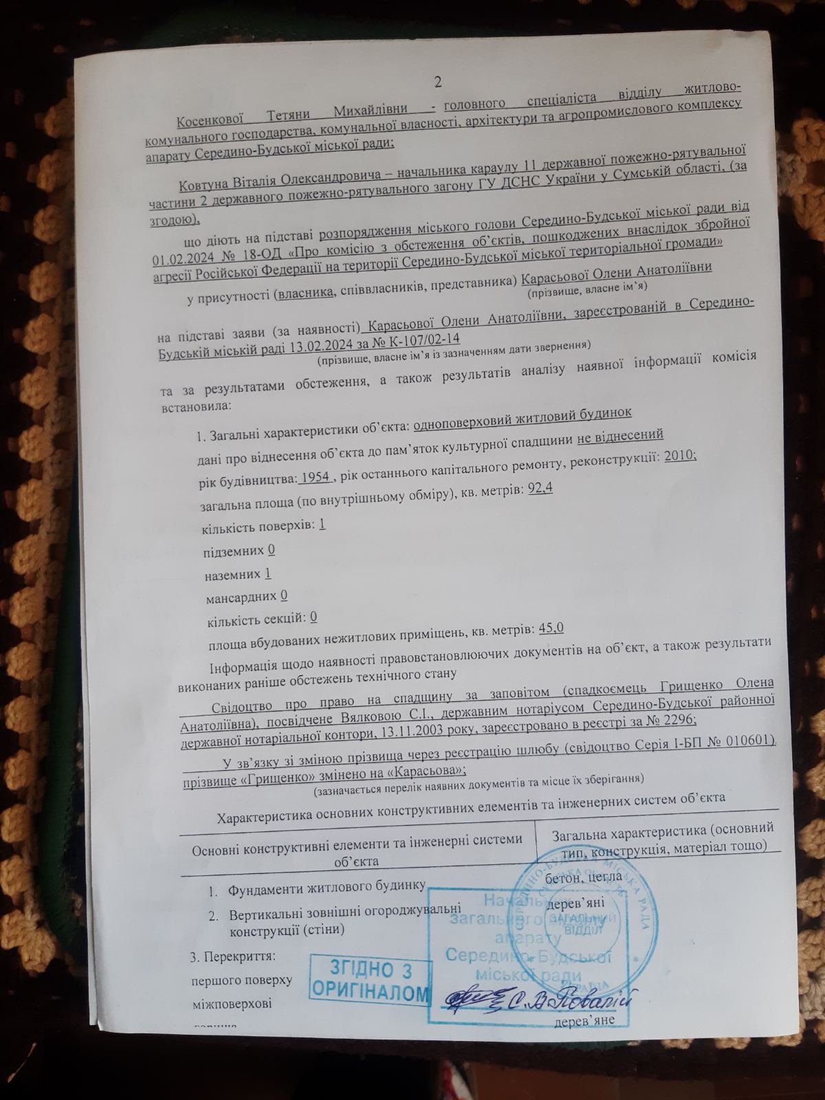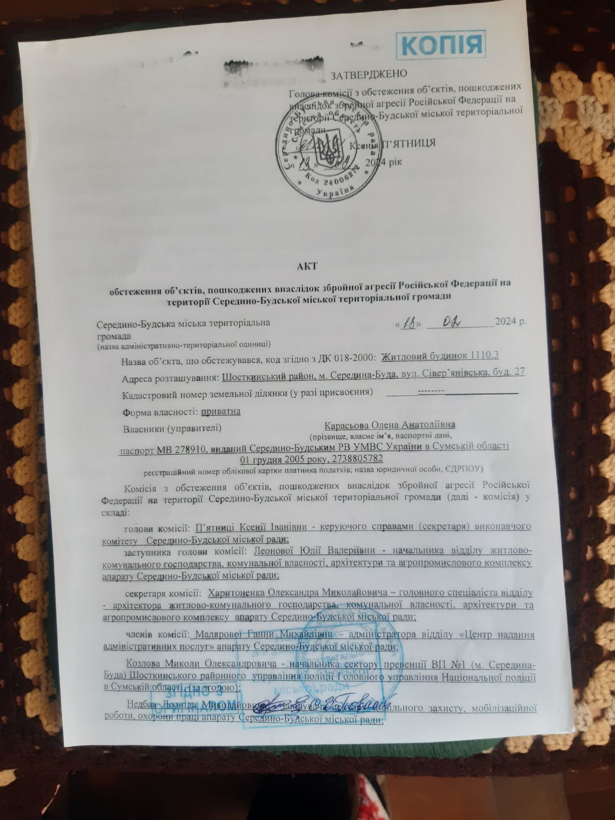 У січні 2024 р. сімейний будинок зазнав пошкоджень, було вибито вікно та побито 10 листів шиферу на даху. Родина під час обстрілу була вдома, дуже злякалися.