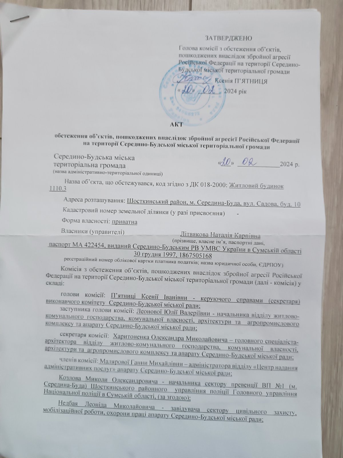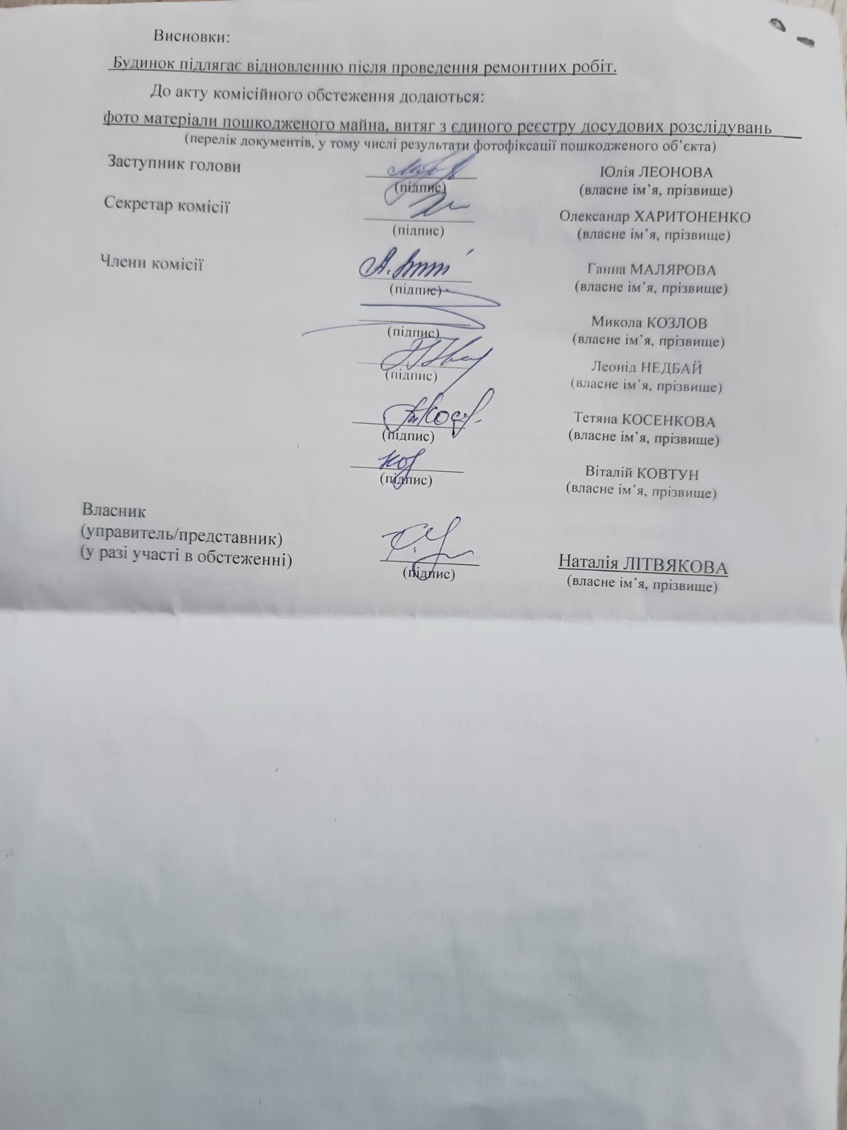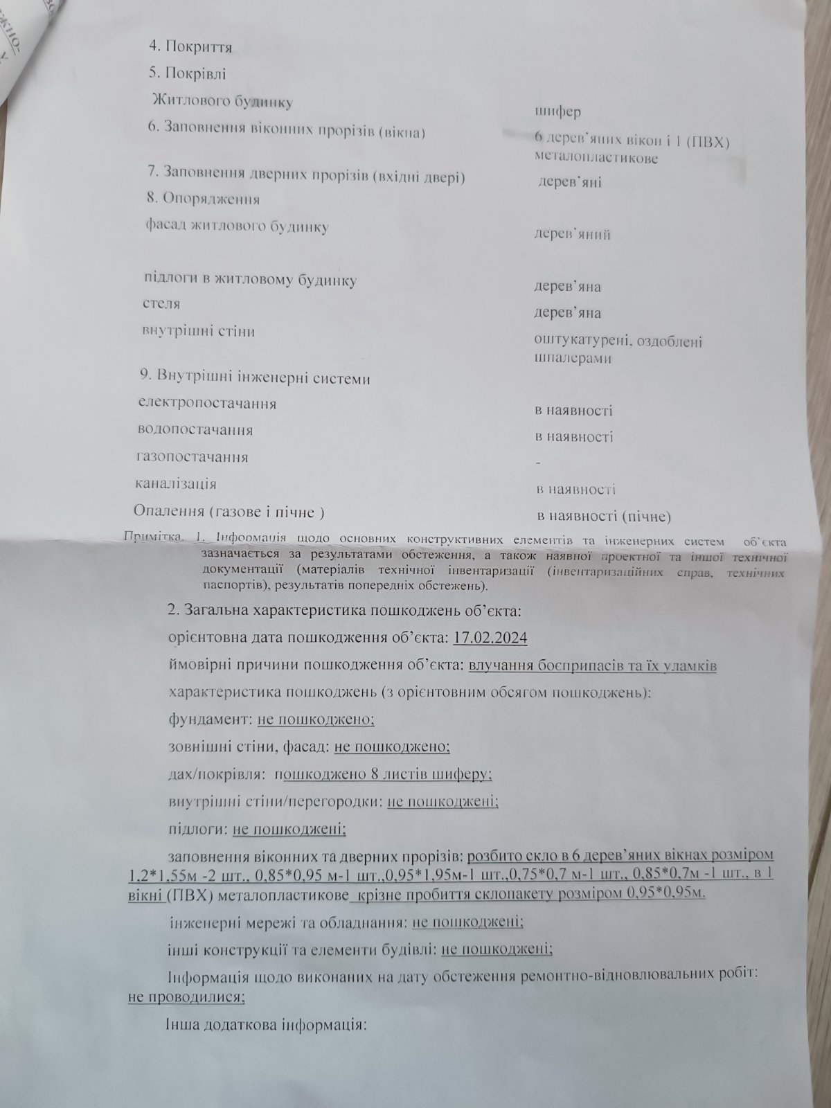 За останні місяці її будинок двічі страждав від обстрілів, 17 лютого та 8 березня 2024 р. Було пошкоджено 6 вікон, вхідні двері, 8 листів шиферу на даху та газопровід. Пенсіонерки на цей момент вдома не було.