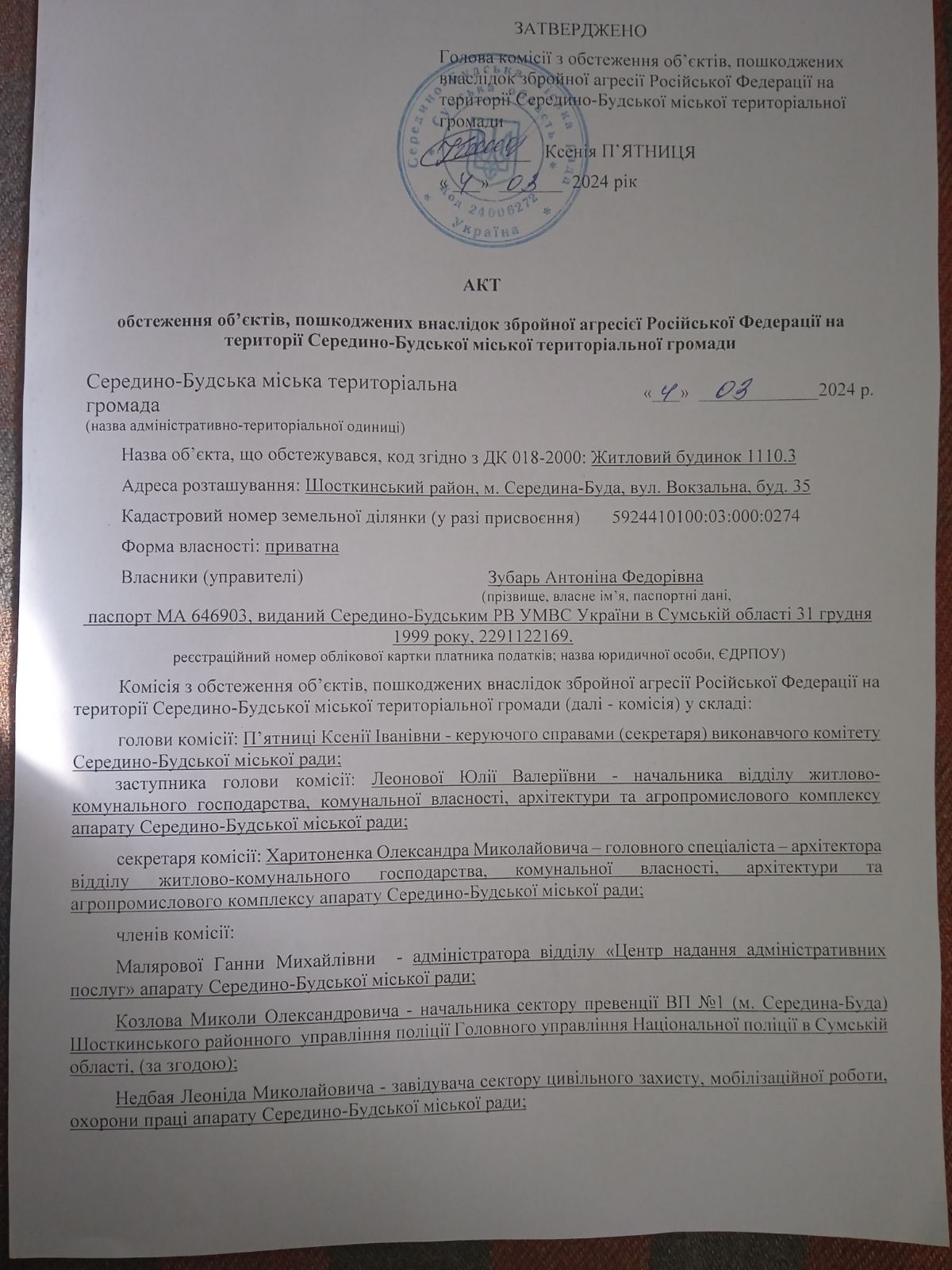 27 лютого 2024 їх будинок постраждав від обстрілу, було пошкоджено: 2 вікна, дах та стіни. Родини, на щастя, вдома не було. Але через постійні тривоги та обстріли у Антоніни проблеми з тиском.