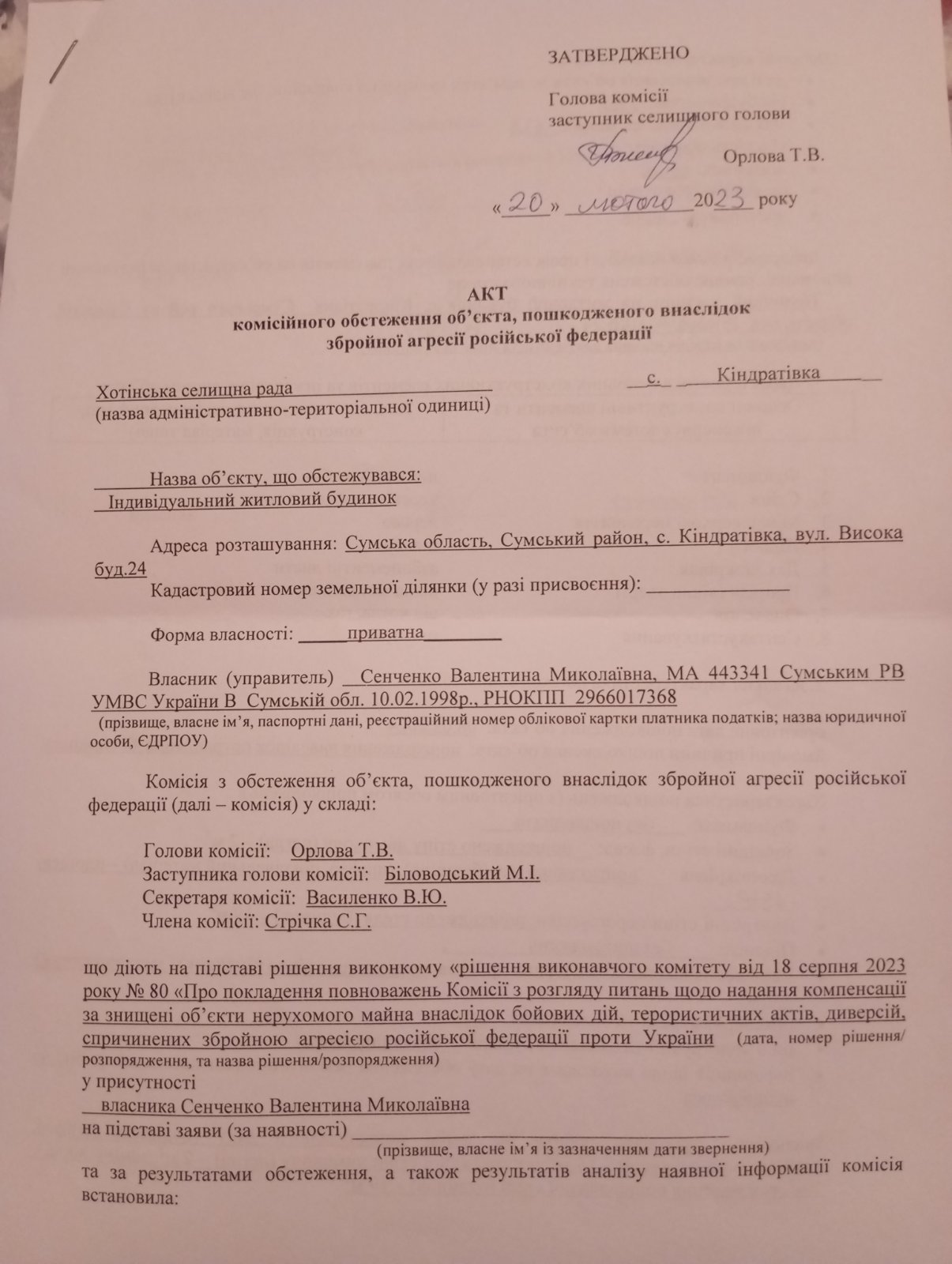 В лютому 2024 року будинок потрапив під обстріл. Зруйновані вікна, двері та дах. Вікна забили плівкою, дах накрили брезентом. Але це тимчасові міри. Для повного відновлення потрібні кошти, яких, нажаль, жінка не має. Тому вона просить допомоги у Фонда.