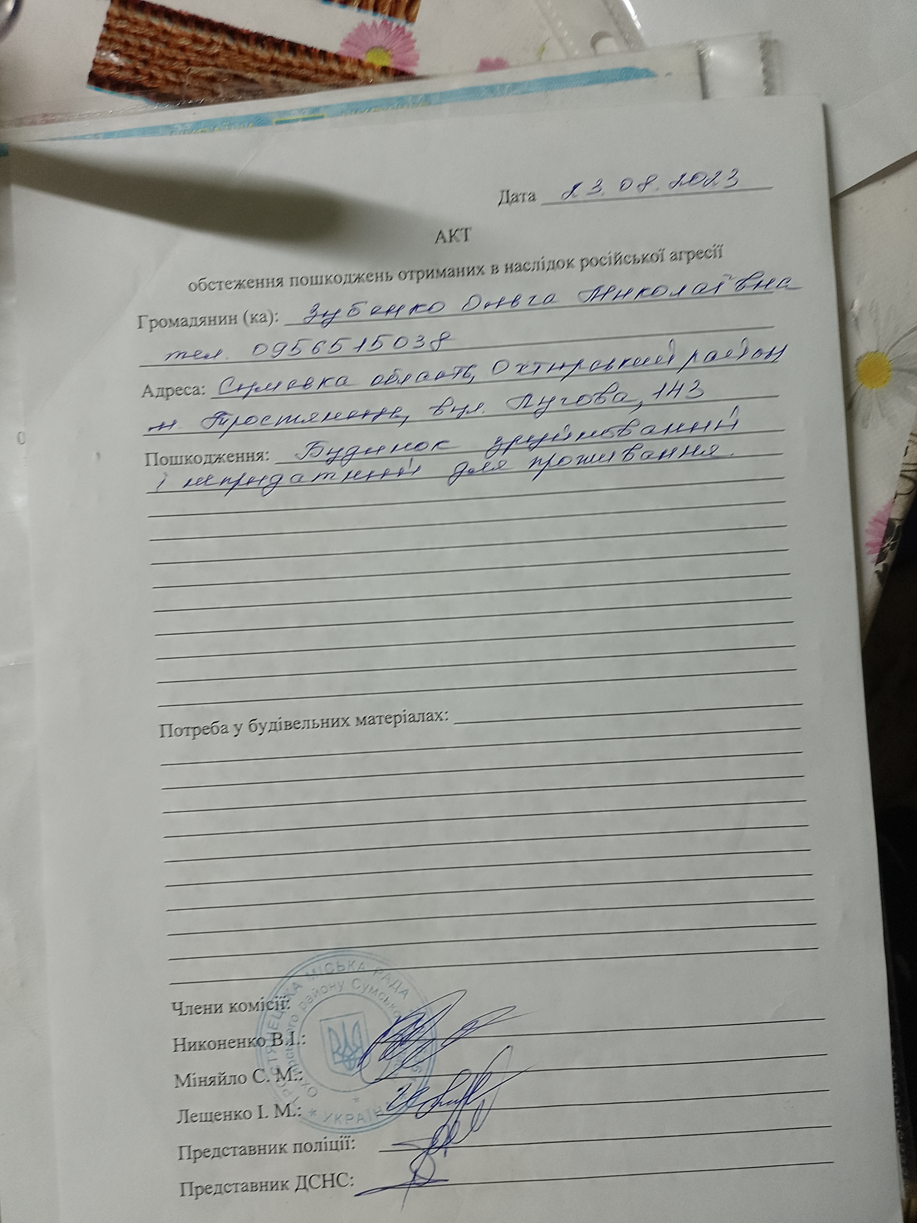 Важку артилерію загарбники розташовували тут прямо на людських подвір’ях та городах і гатили по сусіднім вулицям та районам. Понад місяць містяни жили в пекельному страху, майже не виходячи з холодних підвалів. 26-річна Ольга ховалась в погребі під літньою кухнею разом з двома маленькими синами. Та вижили вони лише завдяки цьому місцю. Вибух снаряду залишив їхній будинок без даху, вікон та дверей. Та найстрашніше - дуже налякав дітей: З-річний хлопчик перестав розмовляти, старший, 6-річний - тепер гостро реагує на гучні звуки. Обидва - відвідують психологів та логопеда. Ольга, мати-одиначка, наразі не працює, опікується дітьми. Сама жінка не в змозі відремонтувати будинок. Тимчасово всі знайшли прихисток в домі бабусі, де ще зростає троє неповнолітніх дітей.