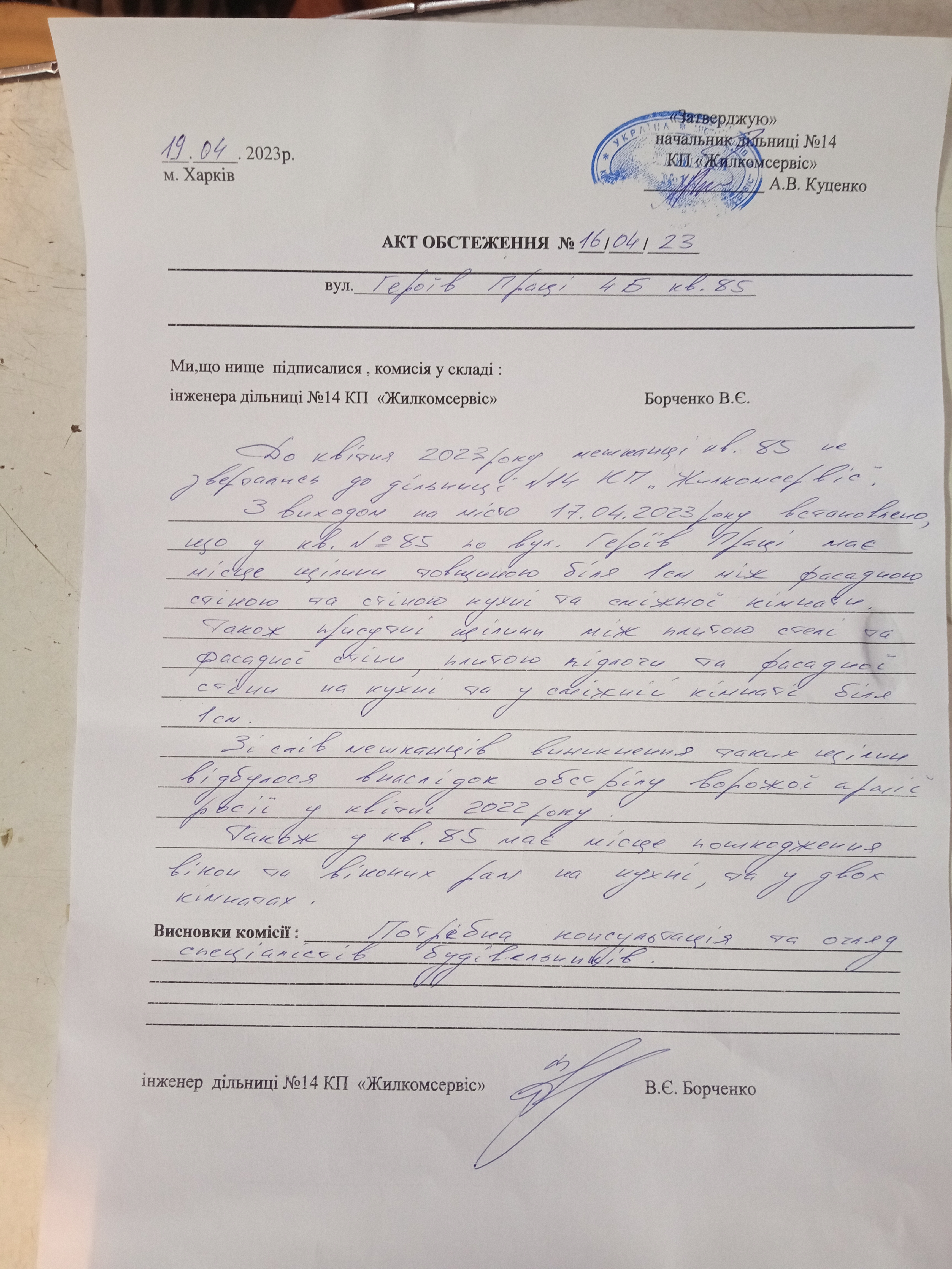 Обстріл стався 21 квітня 2022 року. Було вибито 4 вікна, балконні двері, стіна відійшла приблизно на 1 см. На щастя, родини піж час обстрілу вдома не було, але всі члени сім’ї, за словами жінки, зазнали психологічних травм. Вибиті вікна змогли забити фанерою.