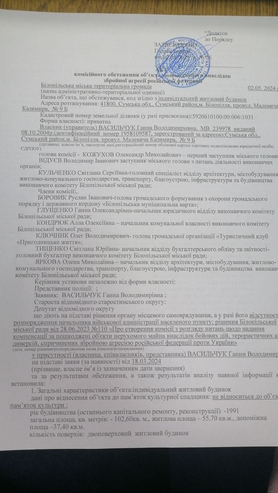 У квітні 2024 року під час ворожого вогню було пошкоджено будинок жінки, а саме вісім вікон та двері. Ганна Володимирівна знаходилась в літній кухні, дивом не постраждала, але дуже злякалася. Самотужки закрили вікна плівкою.