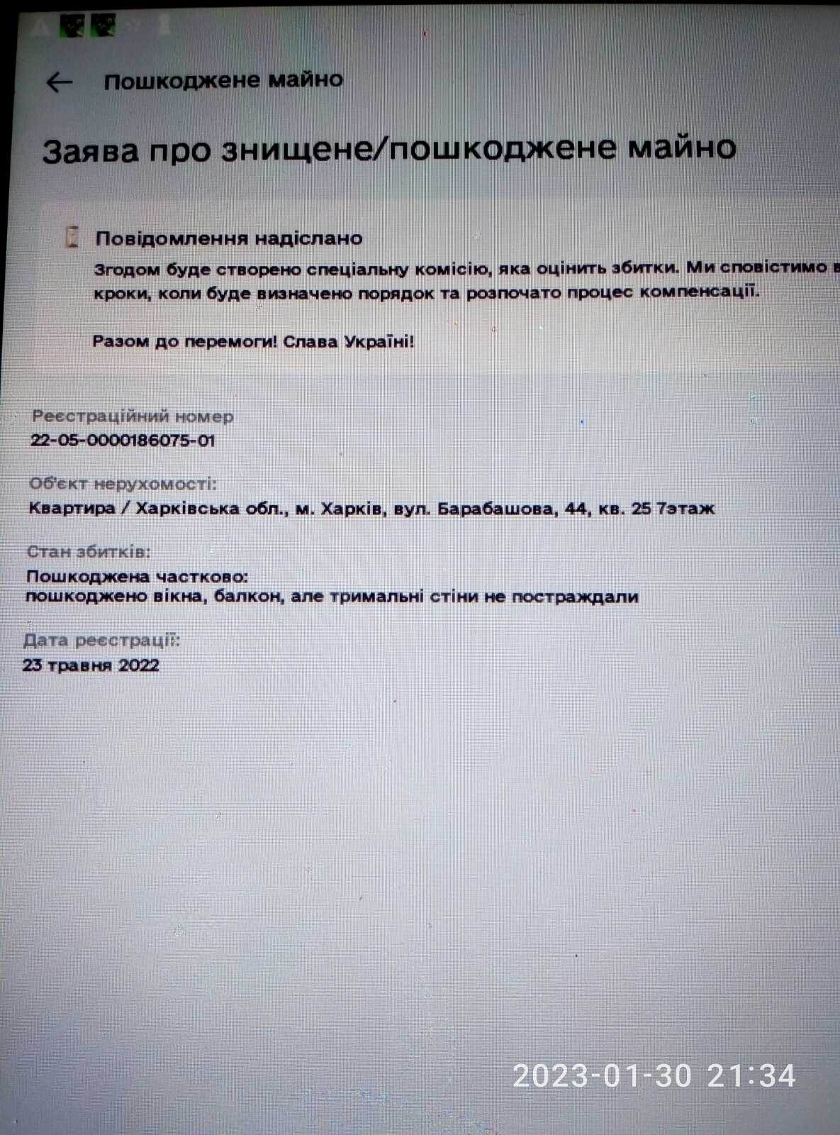 Квартира Володимира Веніаміновича знаходиться у найбільш постраждалому районі Харкова – Салтівці. Чоловік був вимушений виїхати через постійні обстріли. Житло наразі винаймає. Обстріл, через який постраждала квартира, стався іще у травні 2022 року: було вибито 2 вікна, балконні двері. Внаслідок обстрілу постраждало не лише житло: чоловік постраждав психологічно, лікував два місяці серце, зараз має проблеми з кров’яним тиском.