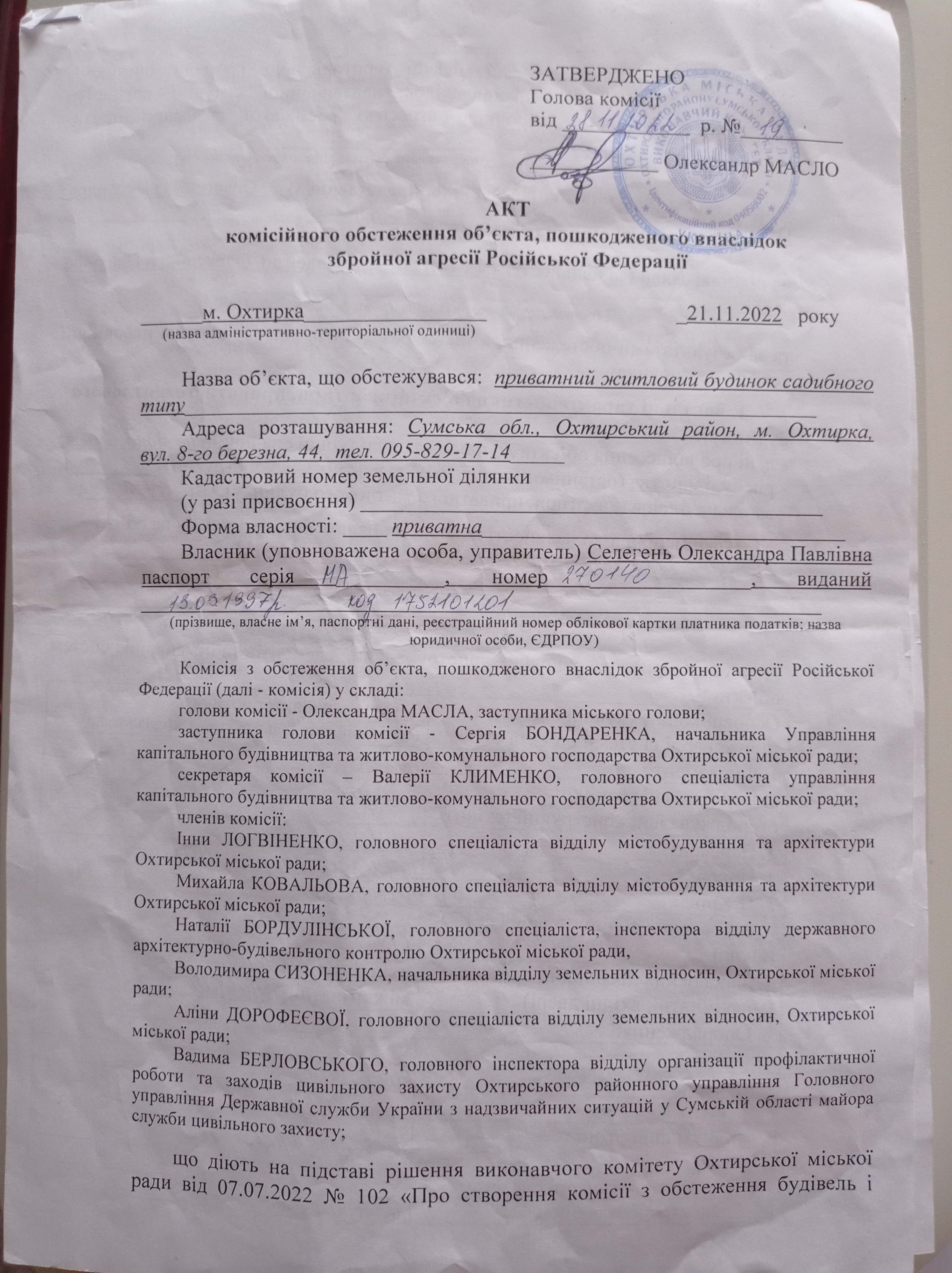 Ще на початку повномасштабного вторгнення, в березні 2022-го року, ракета впала неподалік будинку пенсіонерки з Охтирки Олександри Павлівни. Вибухова хвиля побила два вікна та пошкодила троє дверей. Від удару підскочив навіть дах старенького будинку. І тепер також є руйнування стелі та стін.