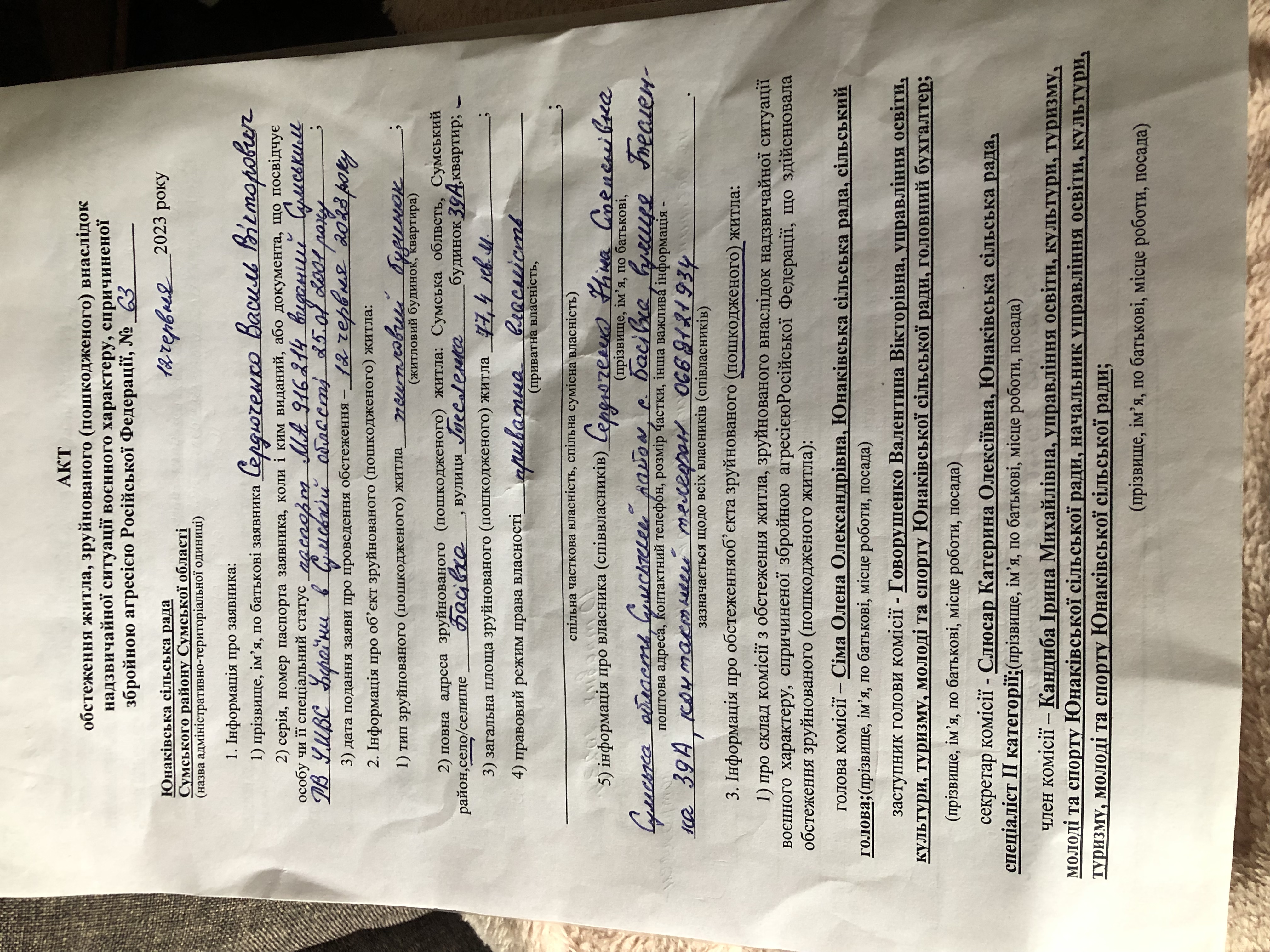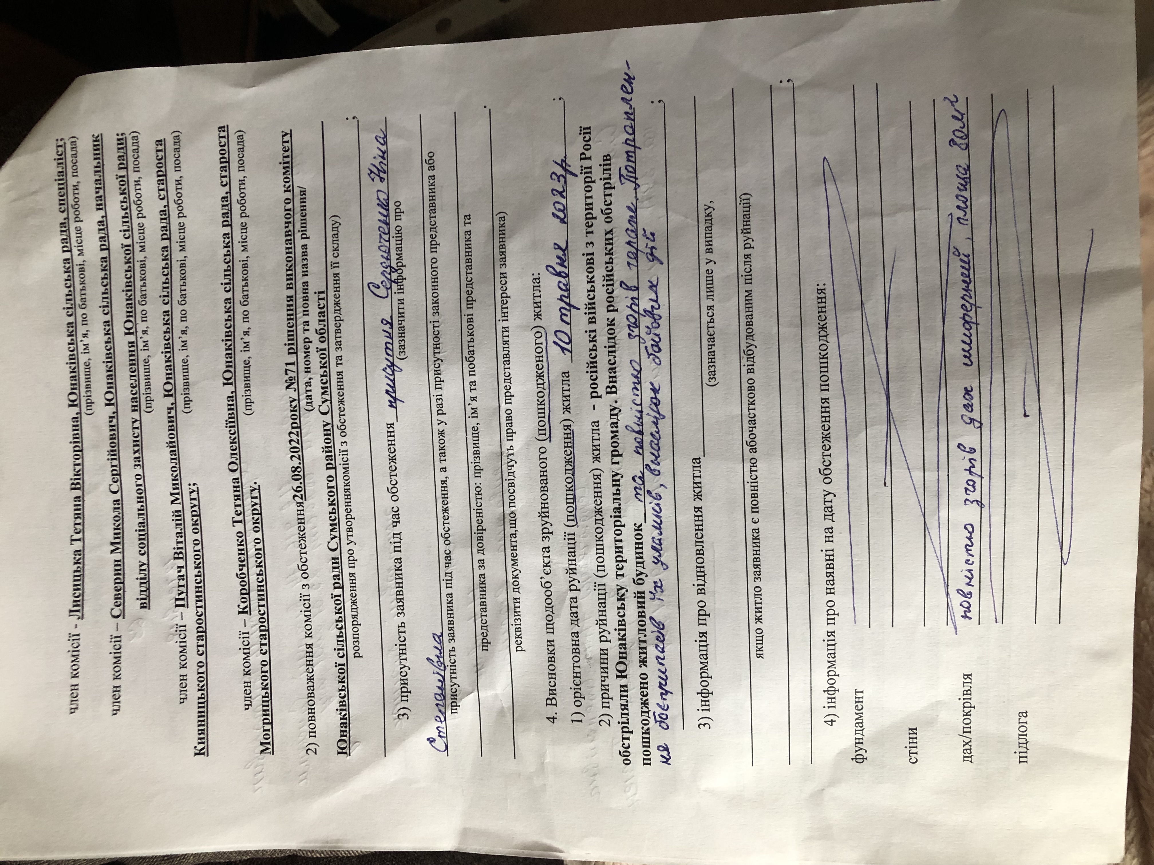 Будинок родини Василя Вікторовича, із прикордоння Сумської області потрапив під обстріл 10 травня 2023 року. Було вибито 4 вікна, 4 дверей та пошкоджено весь дах. Під час обстрілу родина знаходилась в будинку. Власними силами забили вікна. Допомогу на встановлення вікон не отримували.