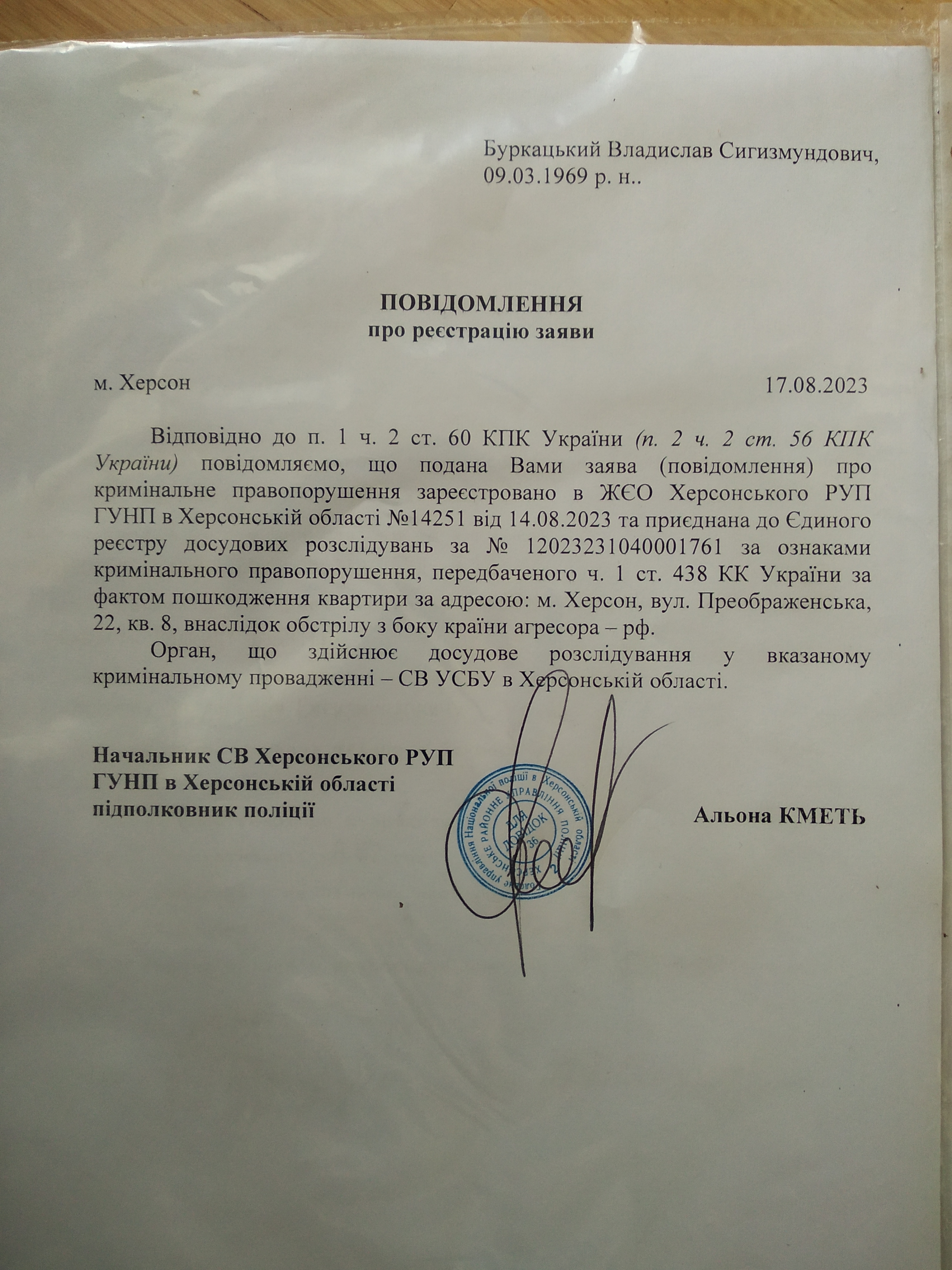 У вересні 2023-го року окупанти вчергове завдали удару по центру Херсону з правого берега Дніпра. Владислав Сигизмундович якраз був у квартирі. Чоловік сильно злякався та отримав мінно-вибухову травму, контузію вуха, деякий час приймав заспокійливі засоби.