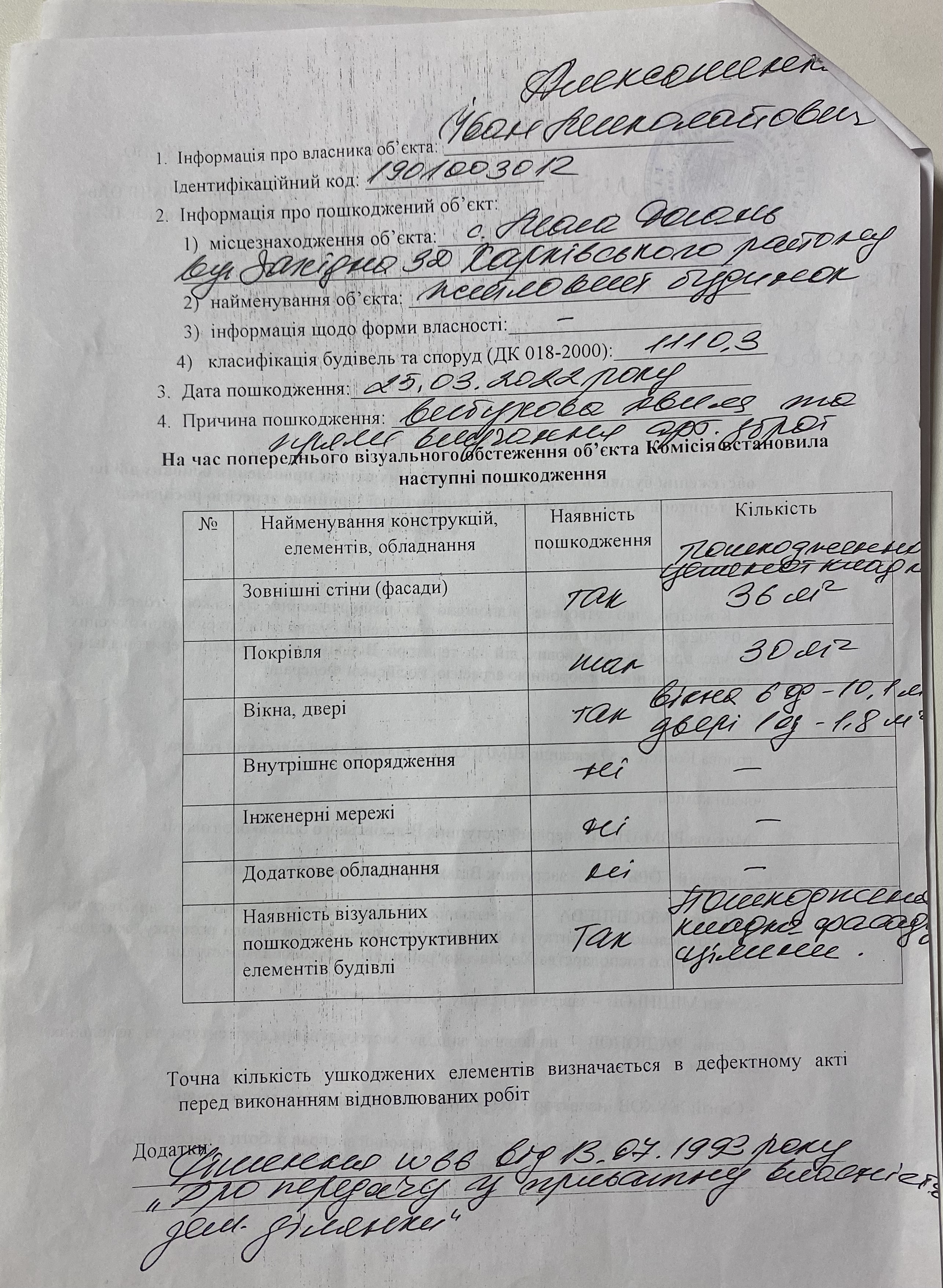 Фізично тоді ніхто не постраждав, однак люди отримали психологічні травми і тепер постійно приймають заспокійливі. Від удару вивернуло ворота, дах будинку. У будинку пошкоджено двері та випали семеро вікон. Господар тимчасово закрив руйнування чим зміг та просить допомоги у подальшому відновленні.