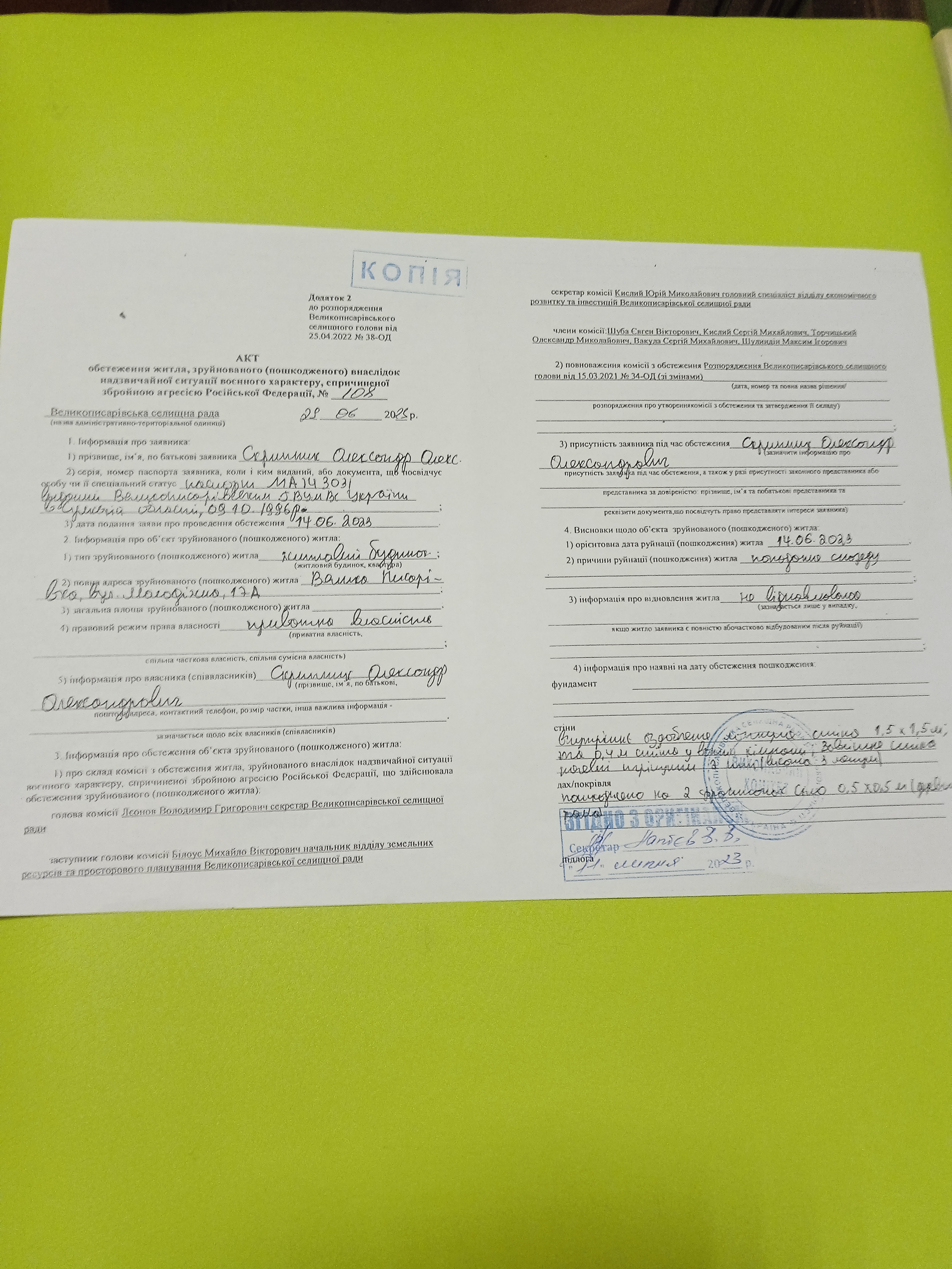 22 травня 2023 р. будинок родини потрапив під ворожий обстріл. Загалом було пошкоджено 4 вікна та господарчу будівлю. Під час обстрілу сім'я була вдома, ховалися у погребі, зазнали психологічних травм.
