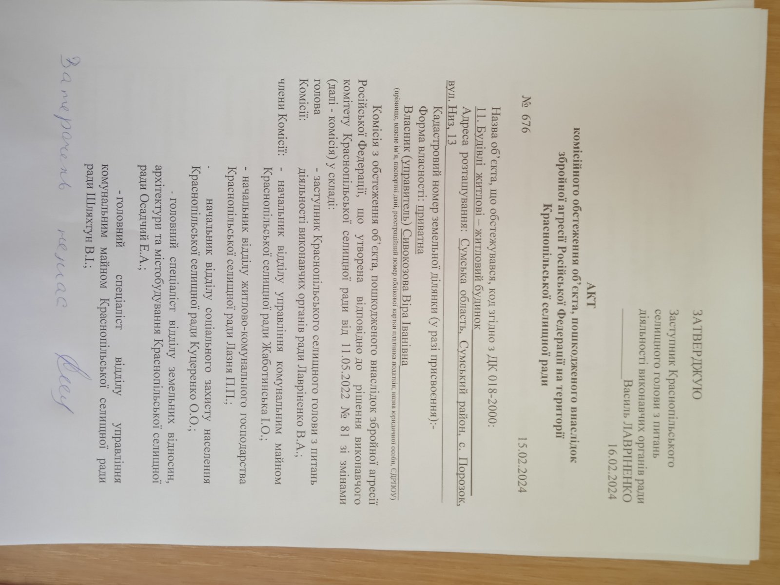 Її дім потерпів атаку від окупантів 13 лютого 2024 року. У ньому тепер пошкоджено три вікна. Побито двоє дверей, одні з яких - до погреба, та 200 квадратних метрів даху будинку.